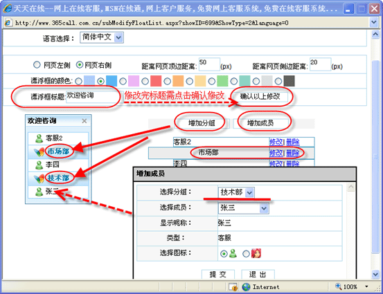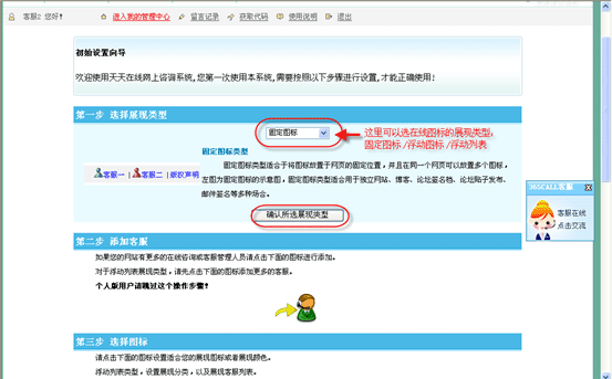 添加完客服后,就可以進入第三步選擇在線圖標了,在“圖:初始設置向導 2 ” 上點擊“在線圖標設置”就彈出在線圖標設置窗口:
