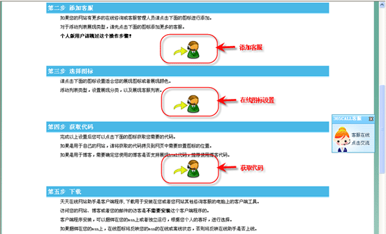 完成在線圖標設置后,在“圖:初始設置向導 2 ” 上點擊“獲取代碼”,彈出獲取代碼頁:
