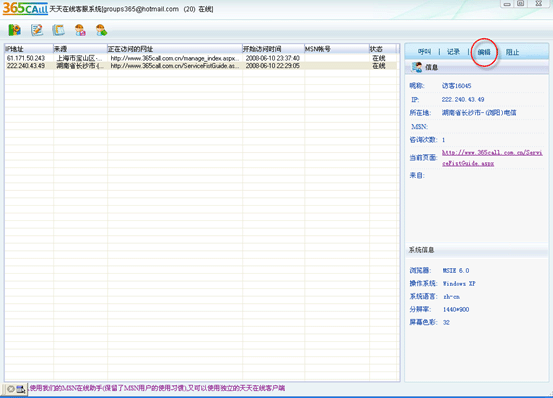從此不必為重要客戶的信息流失而擔憂,即使您的客戶下線后重新與您對話,他的訪客名片與歷史對話也不會消失,方便您的識別。 在kf000在線客服系統客服的監控窗口,可選中一位訪客,點擊右邊的“編輯”按鈕: