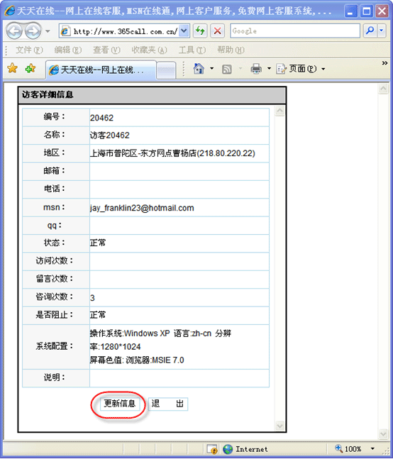 圖:訪客信息編輯窗口 _ 客服監控窗口