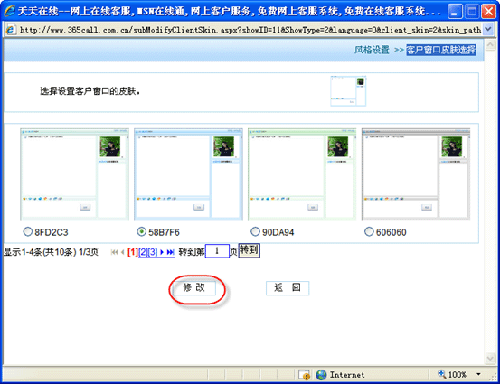 個性化訪客窗口,使之與網站風格整體協調統一。 登陸kf000在線客服系統網站,點擊“系統設置”->“風格設置”->“客戶窗口設置”,彈出客戶窗口皮膚選擇頁: